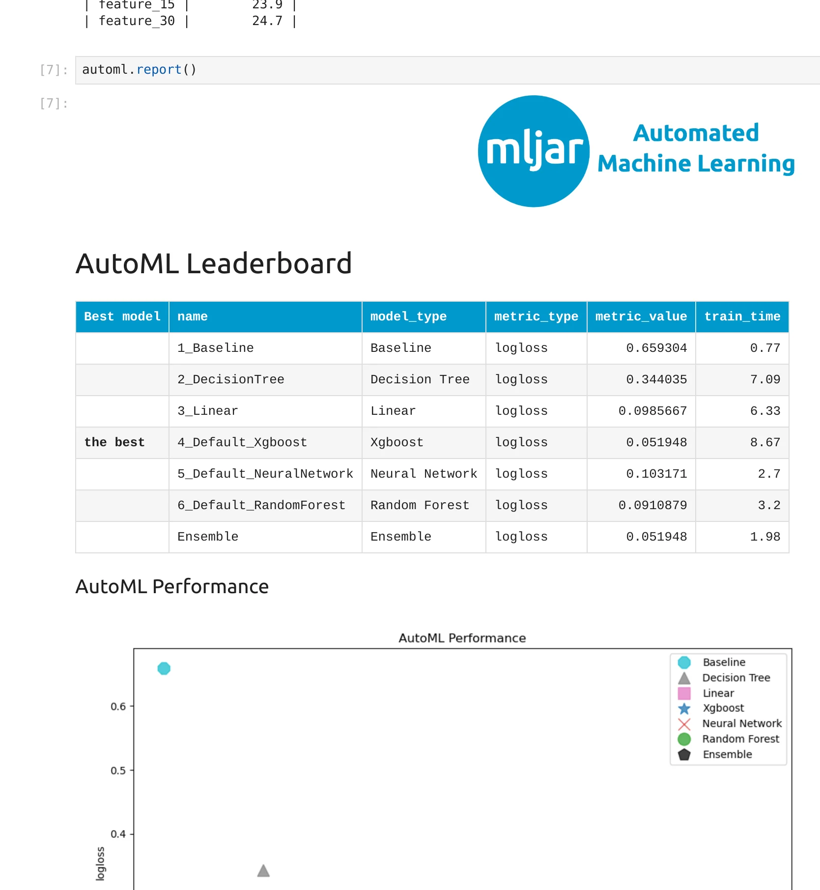 This method creates a clean, structured summary of your AutoML run. It is text-first and easy to parse. In a way, this is a step from Machine Learning for Humans to something new: machine learning that is also easy for machines.