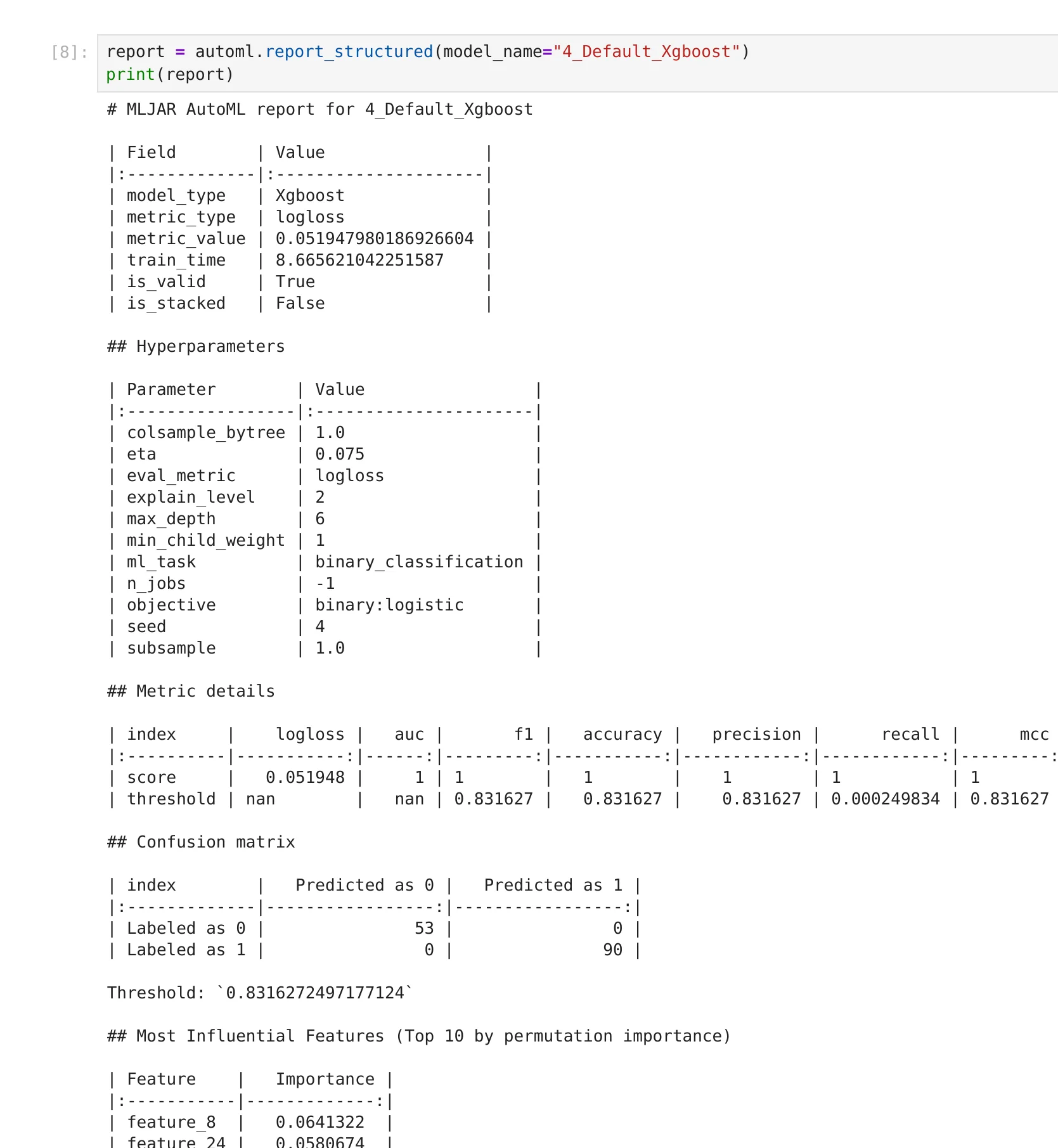 report = automl.report_structured(model_name="4_Default_Xgboost") print(report)